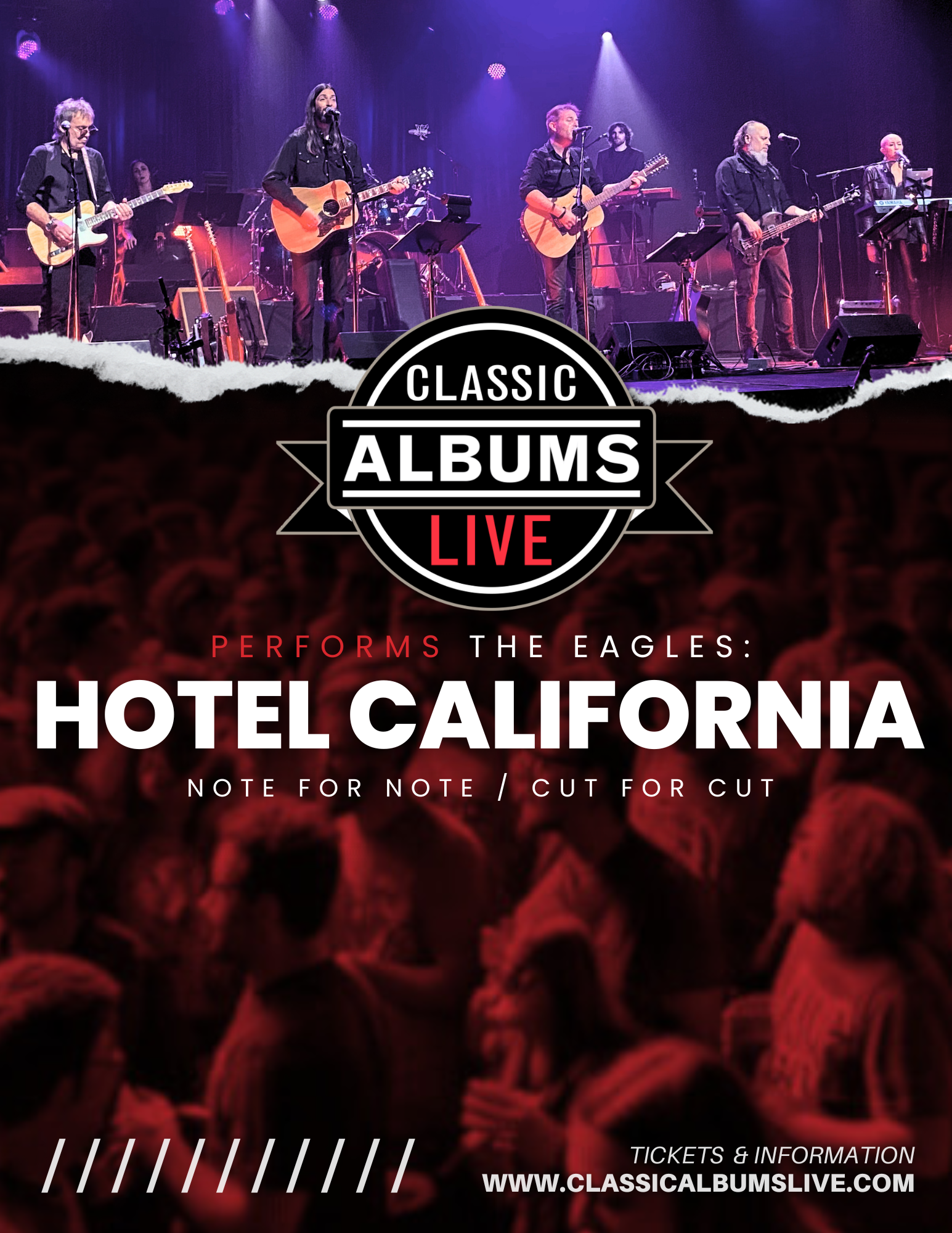 A La Mirada Theatre favorite, Classic Albums Live returns with its roster of A-list musicians to perform The Eagles’ Hotel California exactly as you remember hearing it, note for note, cut for cut.